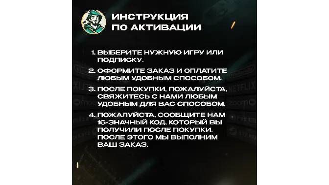 - After payment, no additional actions are required from the buyer - the seller will send the code independently.