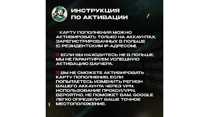 ❌ If you are not located in Poland, we do not guarantee successful activation of the voucher.