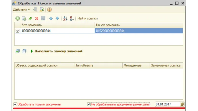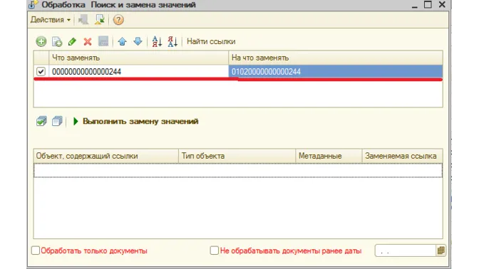 Processing for finding and replacing values for the 1C configuration: Accounting of a public institution, revision 1.0