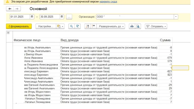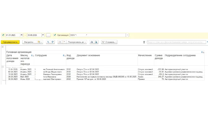 Verification forms for generating 6-NDFL in 1C ZUP 3.1