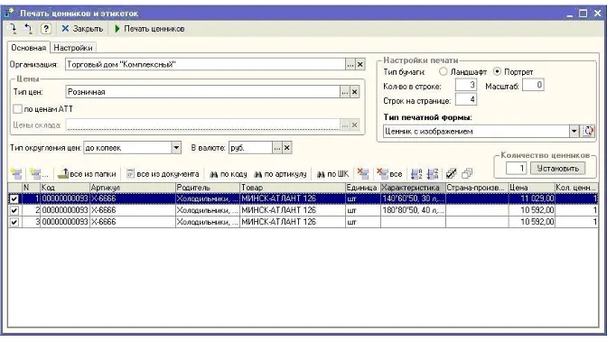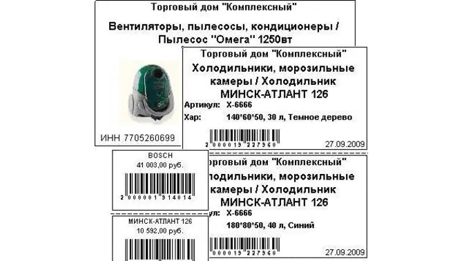 • Any details of the item can be printed in the price tag, including those that are not in the standard configuration. If the requisite is specified in the form of a price tag, then it will be printed automatically;