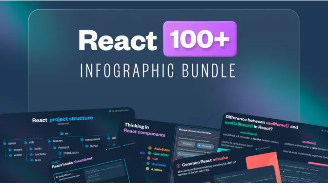 💎 Изучайте React JS с легкостью, используя эту подборку из 100+ наглядных инфографик! Каждая инфографика разработана таким образом, чтобы помочь вам быстро понять сложные темы.
