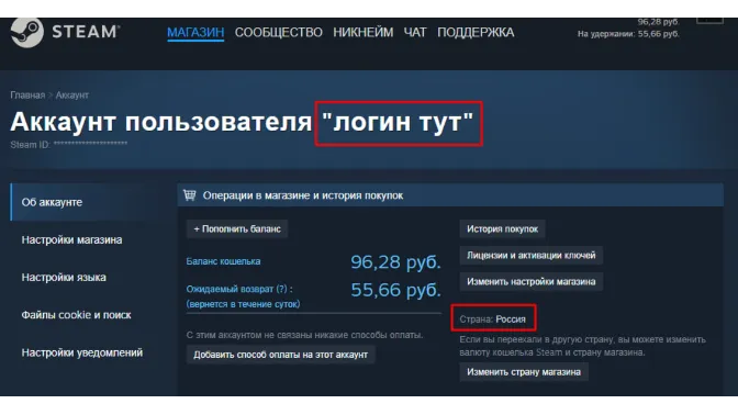 ⚠️ Чтобы узнать свой логин - ссылка на страницу в Steam, где он указан: https://store.steampowered.com/account/