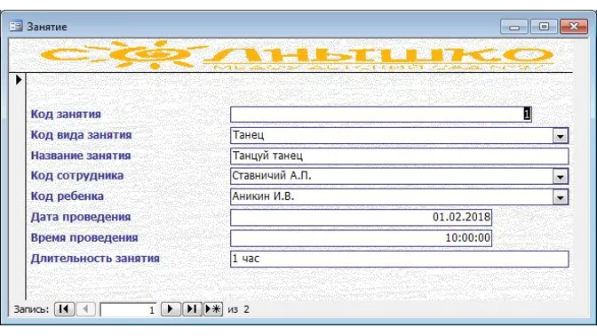 Аналитические возможности базы данных включают формирование следующих запросов и отчетов: информация о ребенке; информация о сотруднике; список детей; реестр видов занятий; дети по группе; расписание занятий.