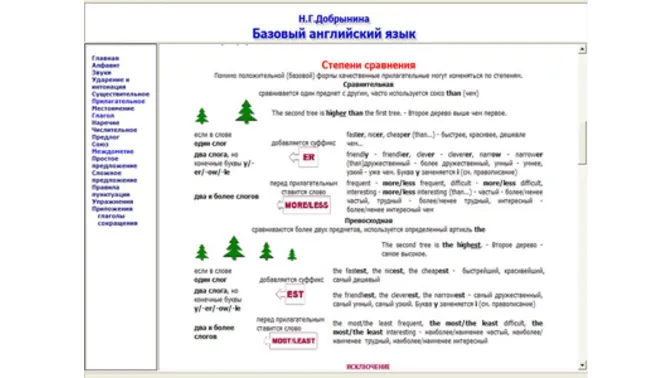 Объяснение правил дополняется примерами на английском языке с переводом, далее закрепляется упражнениями.