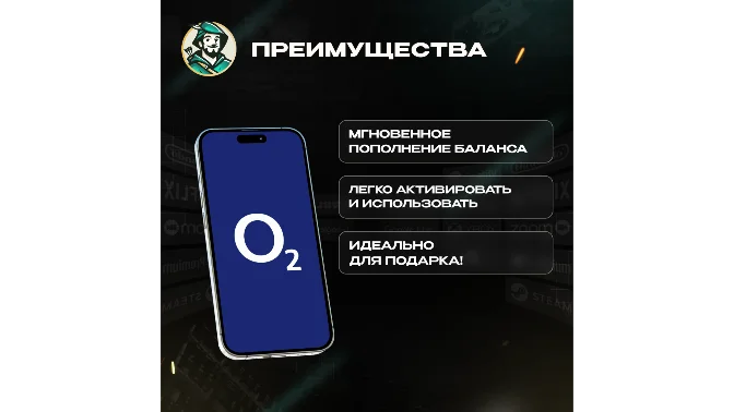 📱 O2 Prepaid Voucher — это предоплаченный электронный ваучер, с помощью которого можно мгновенно пополнить счёт мобильного телефона в сети O2. Идеально подойдёт для пользователей, желающих контролировать расходы на связь и получать доступ ко всем основным услугам без привязки к банковским картам
