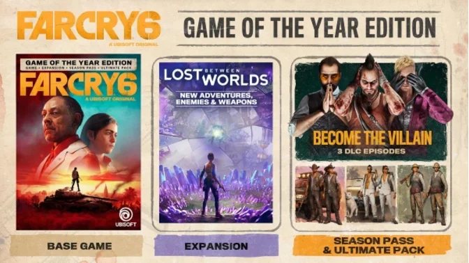 • «Far Cry 6 Season Pass»: включает 3 дополнения и «Far Cry 3 Blood Dragon». Сыграйте за злодеев серии – Вааса, Пэйгана Мина и Иосифа Сида, – и погрузитесь в глубины их разумов.