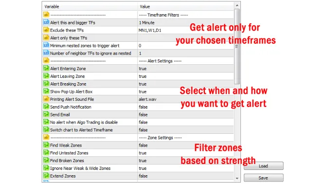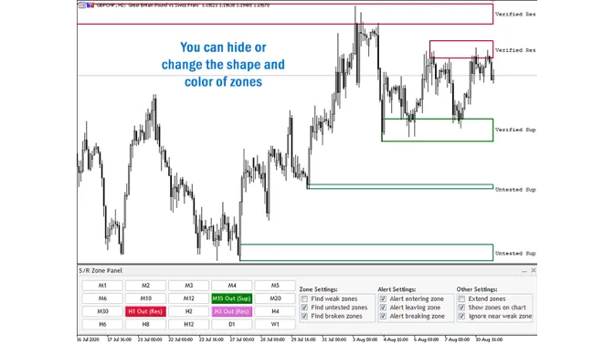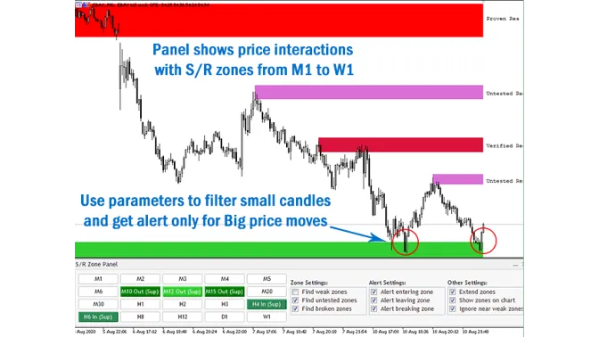 If you are using support and resistance (or supply and demand) zones in your trading strategy, this indicator and its alert and filtering system is a big time saver for you.