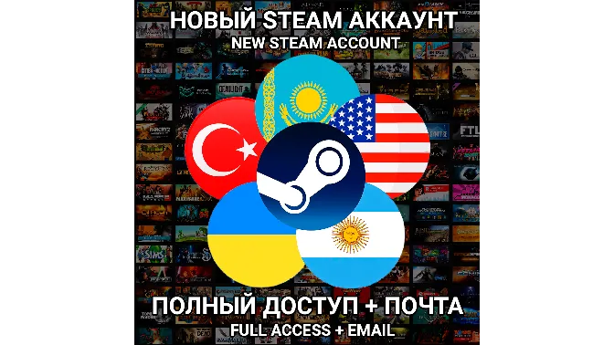 🎮 Новый Steam аккаунт (пустой) с выбранным регионом и полный доступ к родной почте⚡Аккаунт выдаётся автоматически, круглосуточно и без участия Продавца, для получения товара необходимо оплатить его, выбрав нужный регион, после вас моментально перенаправит на сайт (уникальный код проверяется автоматически, присылать его Продавцу не требуется), где будут выданы данные аккаунта (логин / пароль) и данные почты, введите логин / пароль в Steam и следуйте инструкции, чтоб сменить почту на личную.