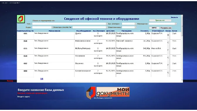 Универсальность базы данных заключается в возможности ее использования всеми материально-ответственными должностными лицами, посредством внесения соответствующих реквизитов.