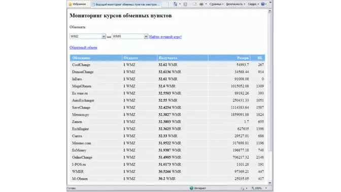 Данный скрипт написан на PHP, отображает курсы обмена автоматических обменных пунктов практически всех электронных валют.