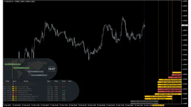 После размещения индикатора на графике он будет отображать новости, связанные с этой парой (например, EUR/USD покажет входящие новости по евро и доллару США).
