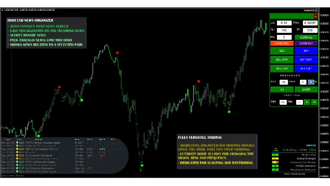 Высококлассный органайзер новостей — идеальный вспомогательный инструмент, который автоматически подключает ваш MT4 к новостному серверу и оповещает вас о любых входящих новостях (низких/средних/высоких).