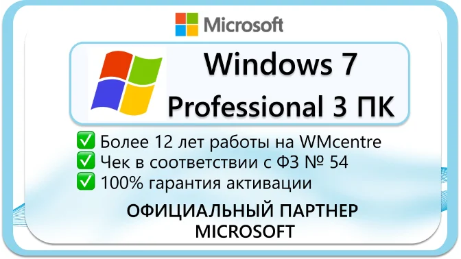 Windows 7 Professional на 3 ПК 🔑 Microsoft Партнёр 🔥