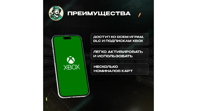 <delivery>🎫 XBOX Live Gift Card — это предоплаченная карта, с помощью которой вы можете пополнить баланс своего аккаунта Xbox и использовать его для покупок в цифровом магазине Microsoft.</delivery>